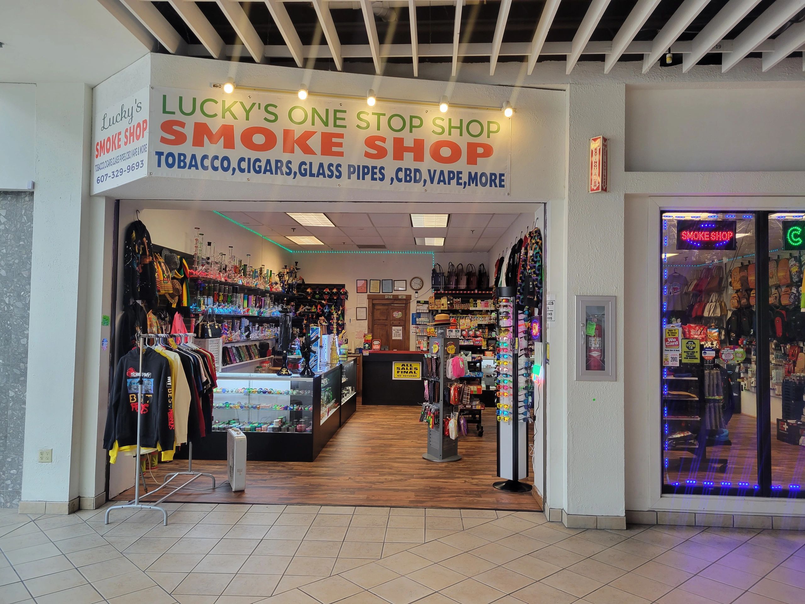 cbd,vape,glass pipes,grinders,cigars,woens handbags,soda,snack,atm & lots more