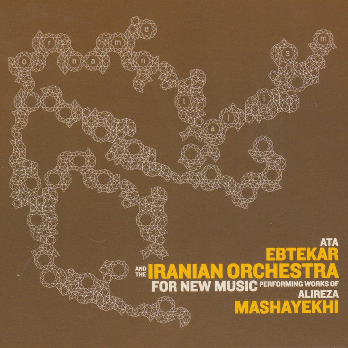 Ata EbtekarOrnamentalism : Sote / Ata Ebtekar and the Iranian Orchestra, released 10 March 20171. Pearly gates / 19992. Little tales 4point5 / 19933. Ornamental / 19954. Little tales 3 / 19935. Broken silence Cmpd / 20026. Turquoise gas in ice / various7. Aural blue / various8. Phonata opus 11 remod. / 19999. Little tales 2 / 199310. Meta XY / 200111. Pattern logic / various12. Little tales 1 / 199313. Tonus / 2006Recorded with the Iranian Orchestra in Tehran,Ata Ebtekar did a real organic electrocutionof Alireza Mashayekhi's original scores.An Organic ElectrocutionPerfect follow-up to the highly acclaimed Persian Electronic Music (SR277), this new Persian Music album involves a cast of seasoned musicians performing works written by legendary Iranian composer Alireza Mashayekhi; in which Ata Ebtekar (aka Sote) was granted complete creative freedom by Mashayekhi himself to transform these compositions into fully realized pieces using his techniques of synthesis and electronic manipulation. It's an organic electrocution without sacrificing the beauty of the performance. These sound sources and compositions were metamorphosed via electronic processing, rearranged and decomposed using sound generators, effect boxes, modular synthesizers and samplers. Finally, Ebtekar programs synthetic sounds and adds new electronic harmonies, melodies and soundscapes to the sonic palette of Western classical music and Persian instrumentation for a unique musical experience. Sote unites the grace and symmetry of noise and silence inside the magic circle of electronic music composition.