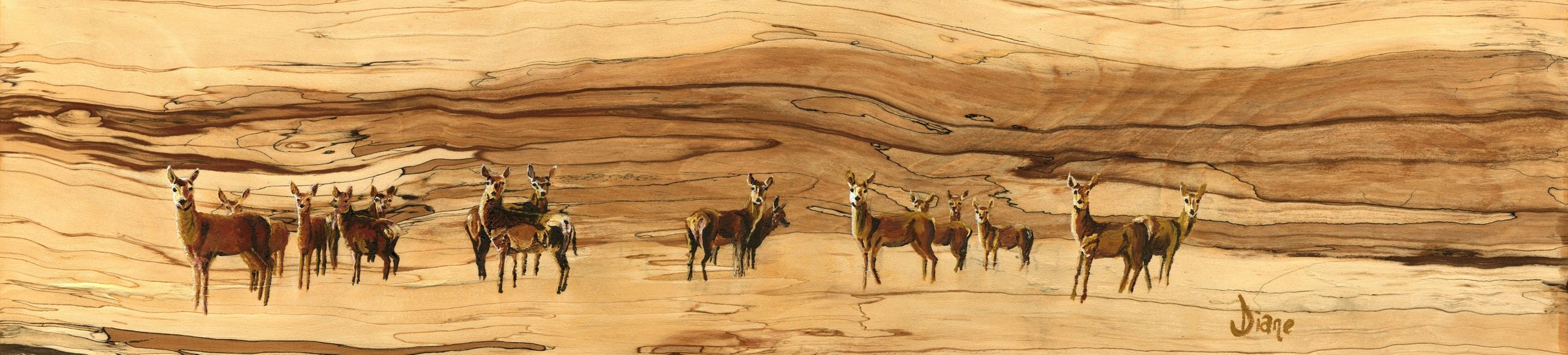 Diane Patterson is a Wildlife Artist painting on wood, her art combines the unique features on each piece of wood with portraits of wildlife full of character