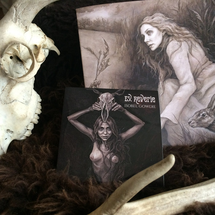 Ex ReverieIsobel Gowdie, released 01 May 20191. Downie Mountain2. Isobel3. Endless Flight4. Red Reiver5. Horse and Hattock6. Transformation7. White DunesThe first edition of the Isobel Gowdie project is available now! a full 8" square booklet of artwork and lyrics, plus a cd of the album. This concept album is a collaboration between artist Julia Jeffrey and Gillian Chadwick of Ex Reverie. Working closely together for years, Gillian wrote songs and Julia created full-scale paintings inspired by the legendary confessions of Isobel Gowdie. Put on trial for witchcraft in 1662, Isobel's testimonies are infamous and as powerful today as they have ever been. Recorded with a version of Ex Reverie composed of some of Glasgow's finest musicians (members of Big Hogg, The Hidden Masters, Trembling Bells, and Trashcan Sinatras) on location in an old mill building in the shadow of castle ruins in Strathaven, Scotland, the album takes a heavy psychedelic trip through the world of a defiant witch. Full of powerful freedom and gleeful malice, Isobel's story is one of raw sexual and magical energy. A woman under heavy societal and religious restrictions, Isobel chose the act of total rebellion in the face of danger and judgement. A complicated and inspiring heroine for our times.