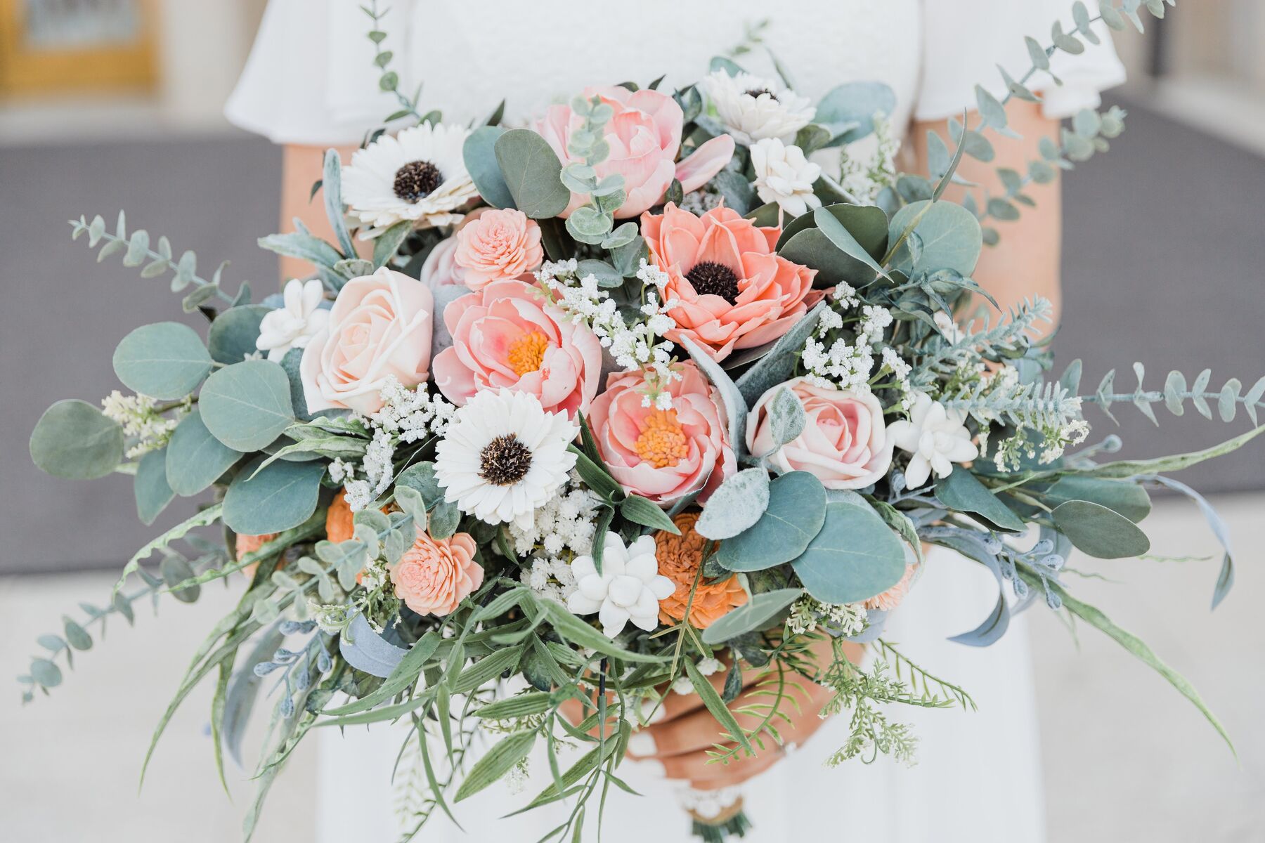Custom floral arrangements using Sola Wood flowers- weddings - school dances - home decor -