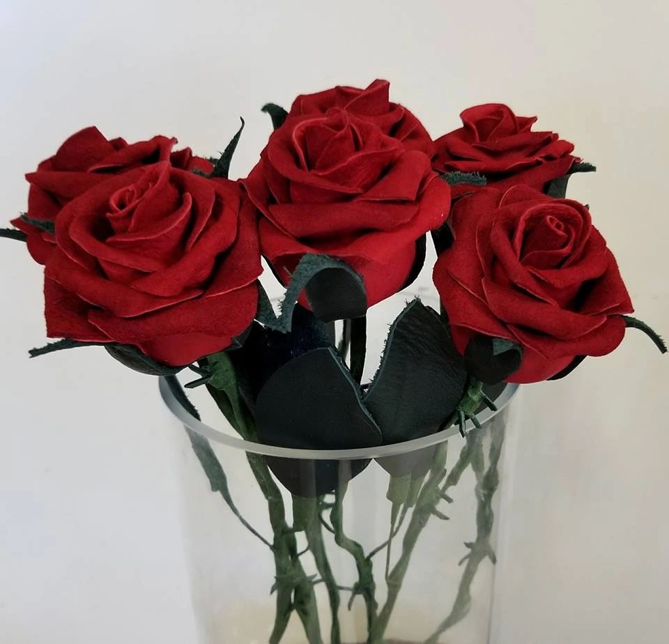 Genuine leather roses made from deer and lamb leather, they will never wilt or die, and you NEVER need to water them! A timeless gift for any occasion.