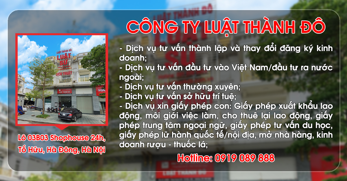 Keywords: Dịch vụ Tư vấn thành lập doanh nghiệp, thay đổi đăng ký kinh doanh, xin cấp giấy phép xuất khẩu lao động, tư vấn đầu tư, sở hữu trí tuệ hàng đầu Việt Nam