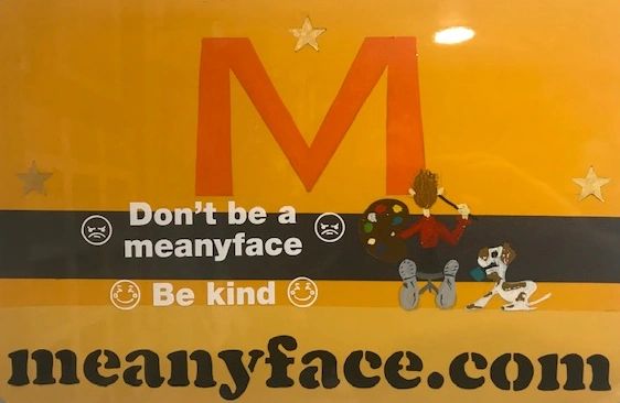 Meany Face Tee Shirts and Wristbands are for all ages . Call or email us for special orders colors sizes any combinations 862 219-9602. We will have new graphics and more items coming soon. Any artist -sign painter welcome to add a single panel related to acts of kindness call for any more info. Thanks Tom