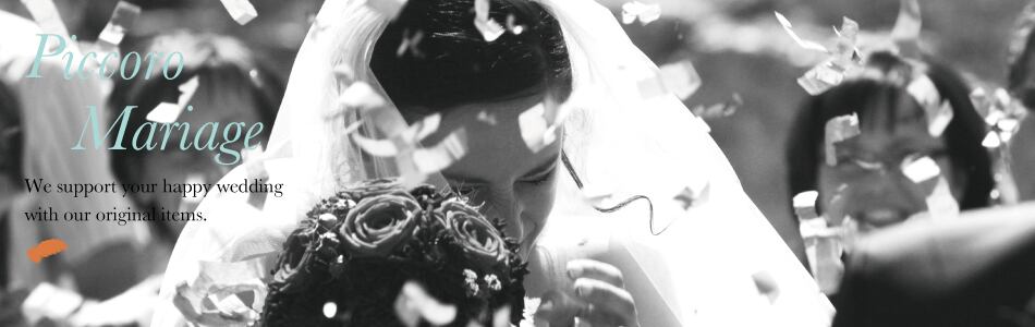 おしゃれな結婚式・披露宴アイテムをお求めならPiccoro Mariageへ。手作りのオリジナルウェディングや、ゲストと一緒に楽しめるこだわりのウエディングに使えるグッズを取り揃えています!