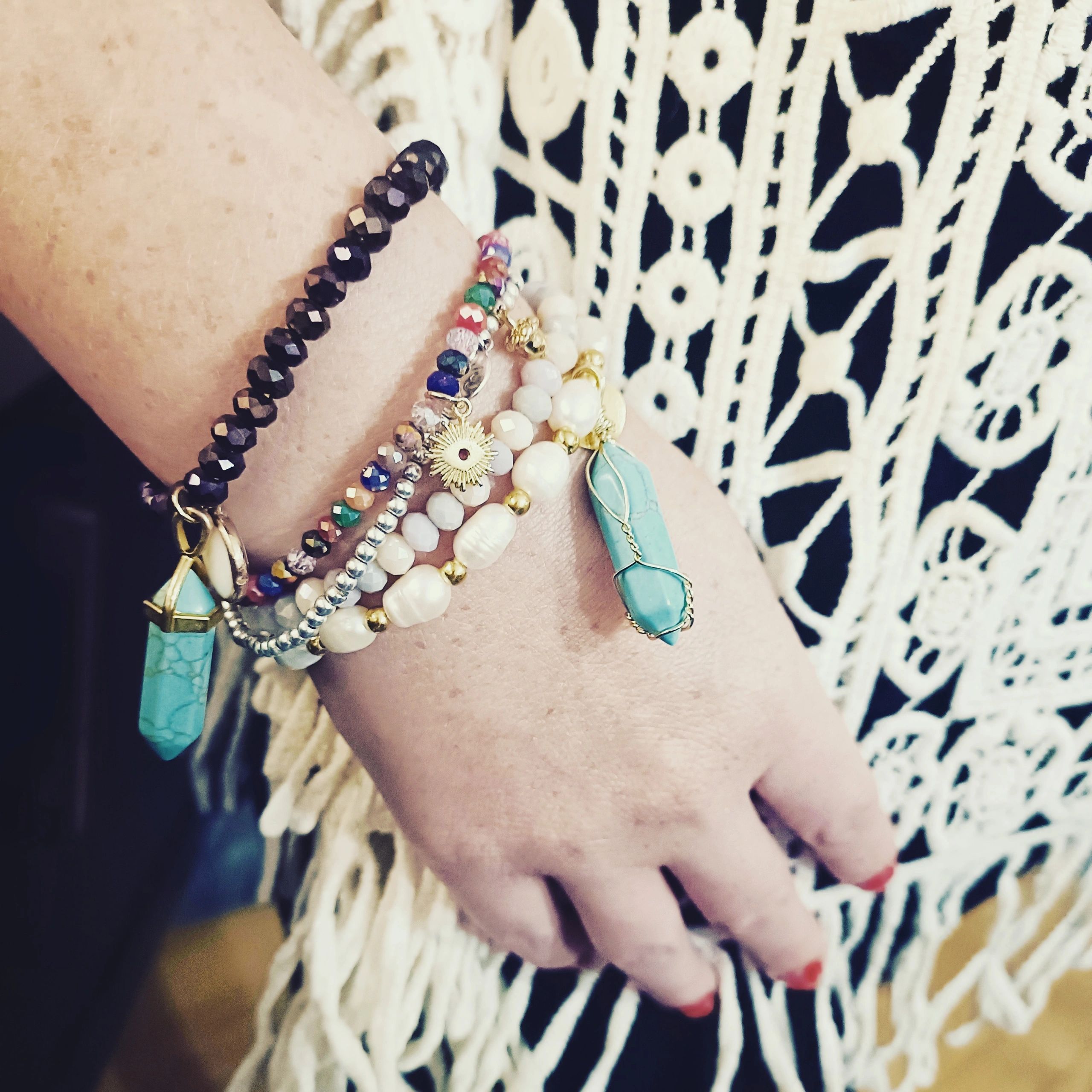 Handmade bracelet personalised,designed to spread joy and uplift!Stunning high quality beads with beautiful colours and unique charms on stretch elastic.