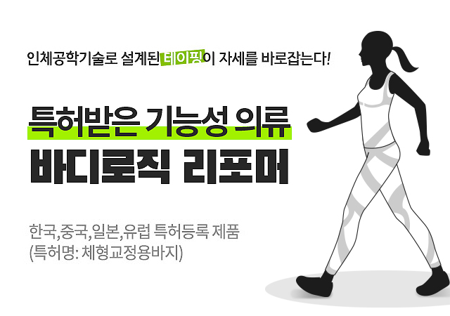 자세교정 의류, 바디로직 리포머 인체공학기술로 설계된 테이핑이 자세를 바로 잡습니다.