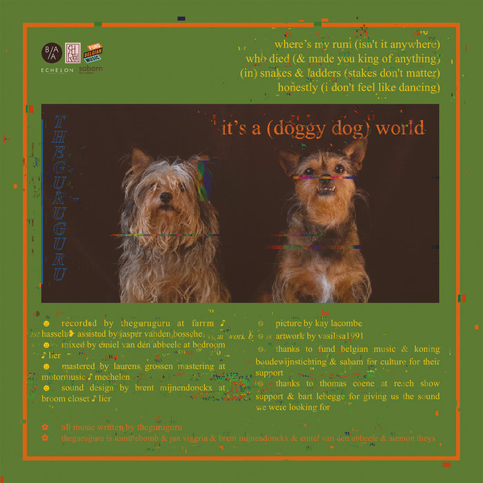 The Guru Guru (BE)'it's a (doggy dog) world', released 25 June 20211. where's my rum (isn't it anywhere)2. who died (& made you king of anything)3. (in) snakes & ladders (stakes don't matter)4. honestly (i don't feel like dancing)
