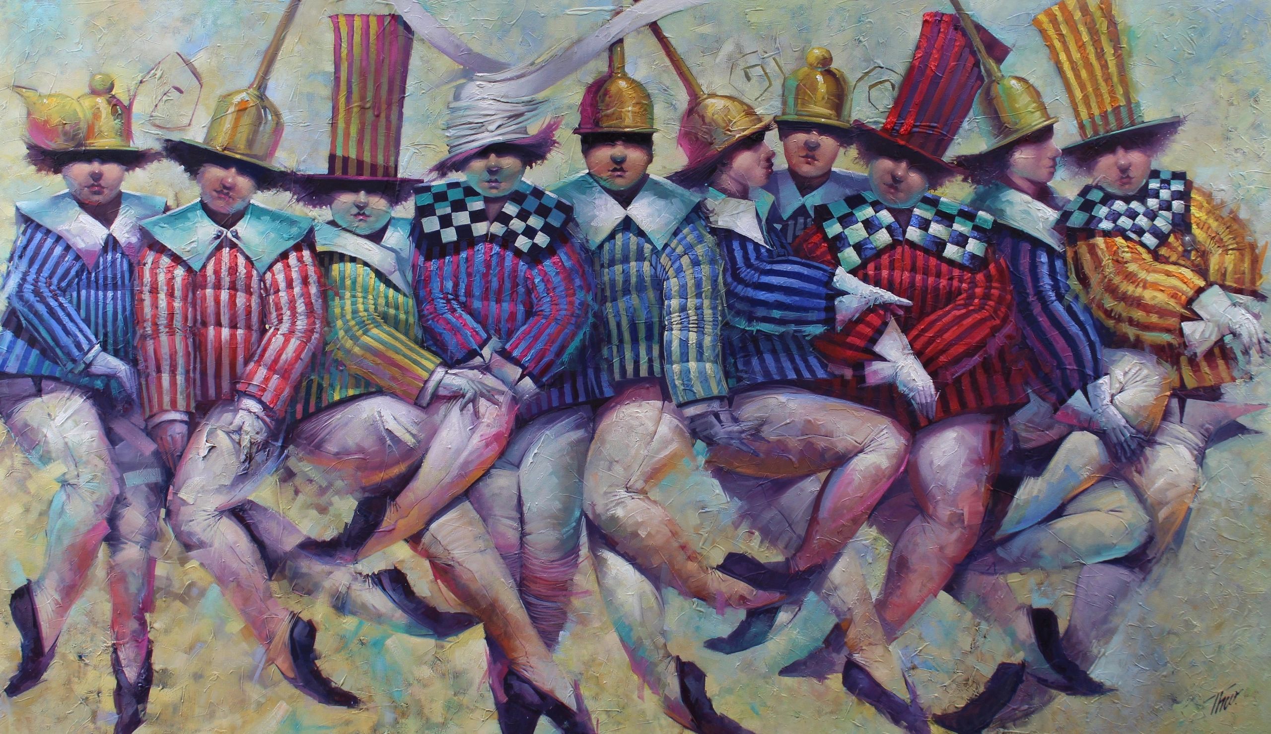 Theo Camacho, Pintor Mexicano. Artista Plástico Mexicano que muestra en sus obras: carnaval, teatro, músicos, gordos, flacos, acróbatas, máscaras, jaulas y gran variedad de colores plasmadas en sus obras. Pintura al Oleo.