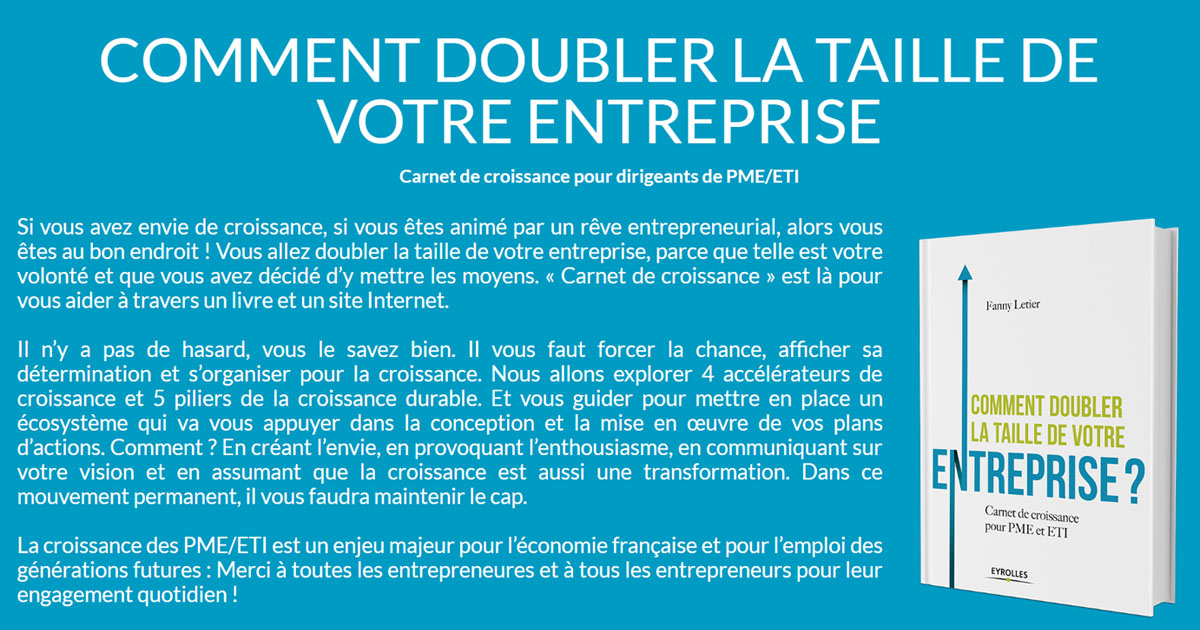 Le site du livre de Fanny Letier, Carnet de croissance pour PME et ETI, avec tous les outils du livre et toute la réflexion stratégique des dirigeants d'entreprises.