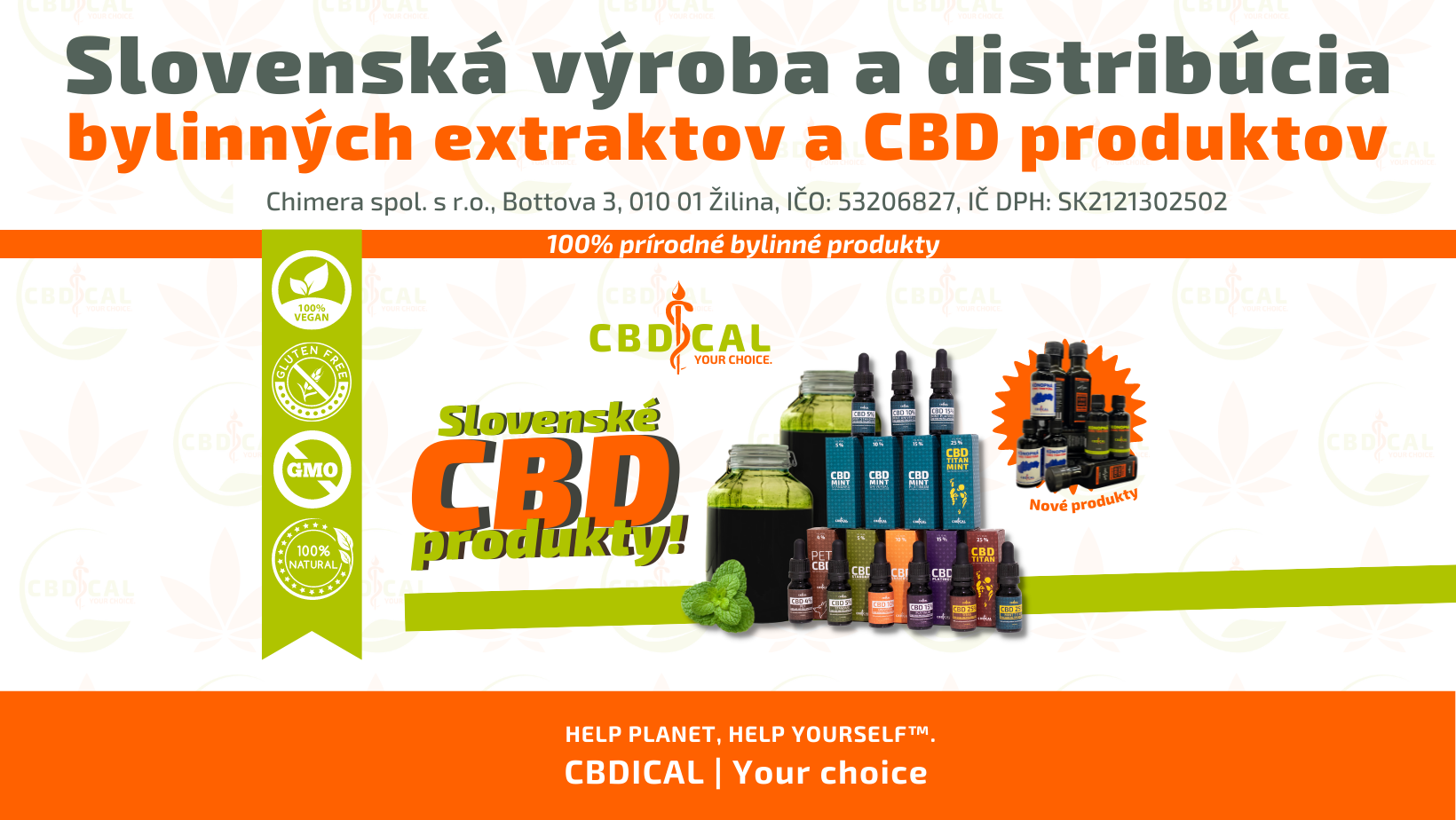 Slovenský výrobca bylinných extraktov a konopných produktov s CBD. Podpora imunity a zdravia Vášho organizmu. Help planet, help yourself™. CBDICAL | your choice.