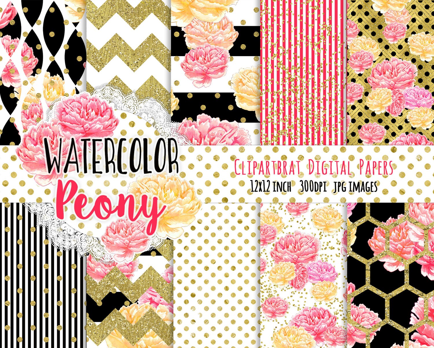 Watercolor Clipart, Digital Graphics, Papers, Branding