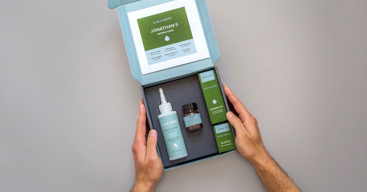Colorsmith crafts custom home hair color for men and delivers it to your door. Our professional hair dye is natural-looking and made to cover grays.