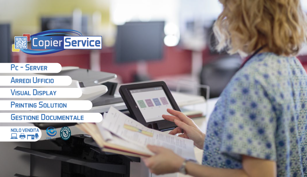 Copier Service fornisce prodotti per ufficio a 360° quali Arredi, Pc, Server, Multifunzione o Visual display dando il massimo della tecnologia per la tua azienda.