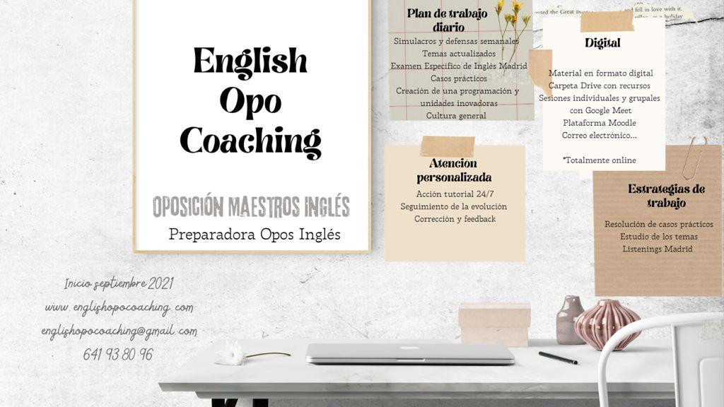Preparadora de oposiciones maestros inglés Madrid y Castilla y León. Modalidad Online. La preparación en EnglishOpoCoaching es exhaustiva, intensiva, individualizada y personalizada, de todas las partes del examen para que destaques en el tribunal y apruebes la plaza.
