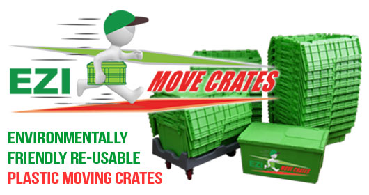 Ezi Move Crates hires green, plastic moving crates to people moving house or business relocation