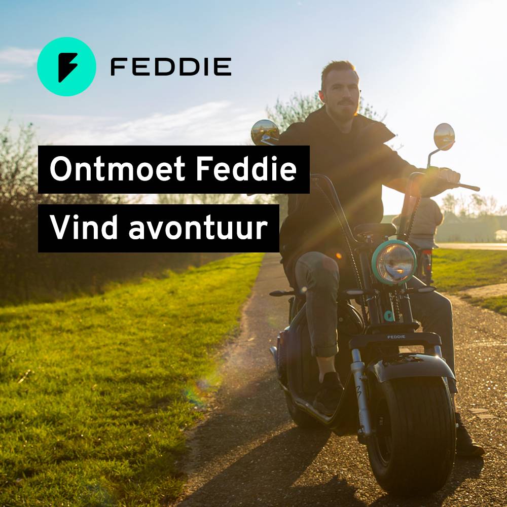 Elektrisch rijden om onze Feddie-scooter. Avontuur vinden in het alledaagse. Dat is onze filosofie, onze missie. Met de Feddie ervaar je het gevoel van ultieme
