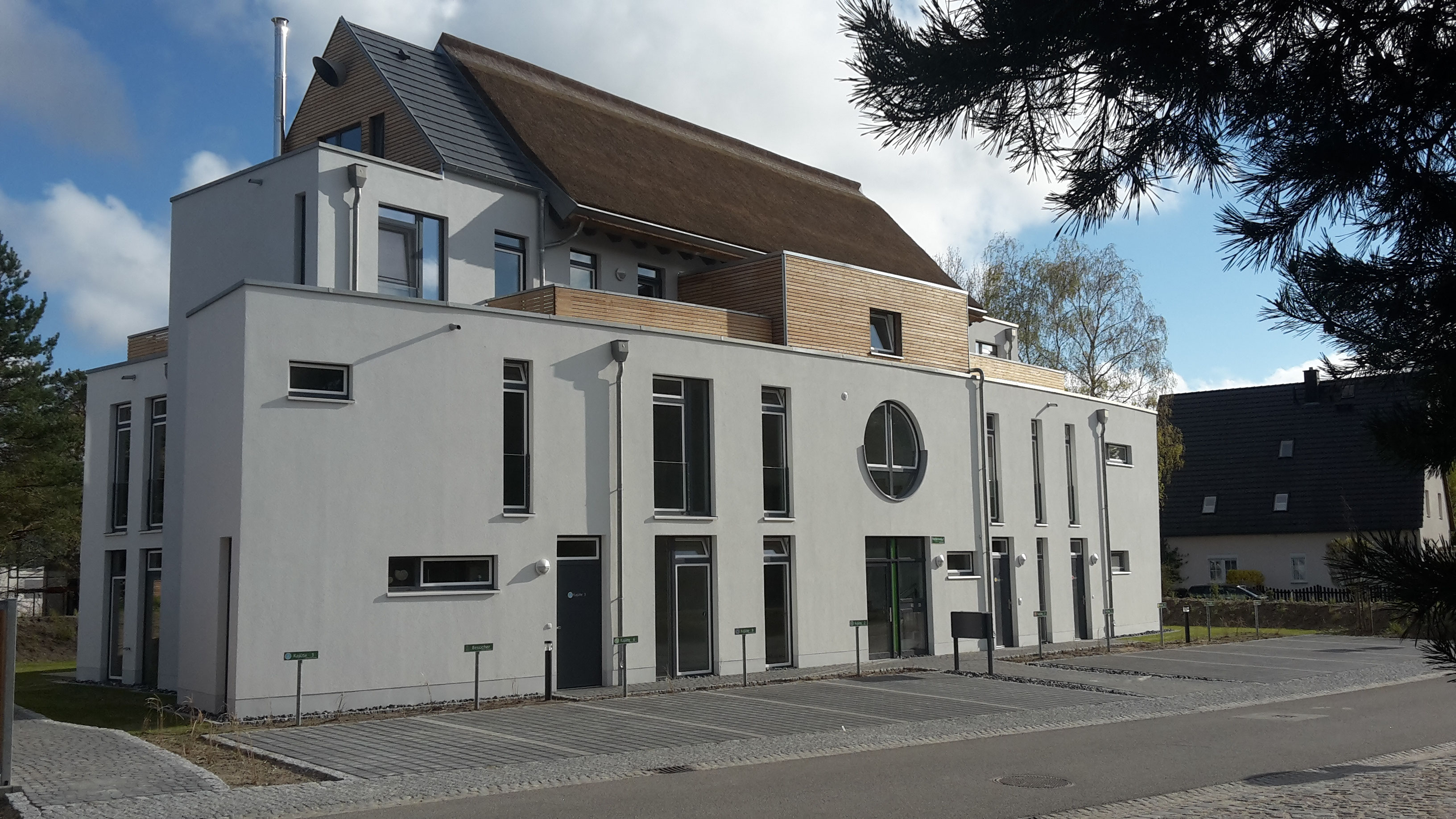 Liebe Gäste, im Kapitänsweg 2 des Vakon Ostseelandes befindet sich strandnah das mit Schilfrohr bedeckte Appartement-Haus, das sich in 8 Ferienwohnungen mit 65m² bis 150m² aufteilt. Auf unserer Homepage www.fewo-ostseeland.de möchten wir Ihnen im Erdgeschoss die Kajüten 2 und 3 und im 1.Obergeschoss die Kajüten 5 und 6 näher vorstellen und Sie für einen Aufenthalt begeistern. Alle unsere Ferienwohnungen sind mit 5 Sternen des Deutschen Tourismusverbandes zertifiziert. Der Fußweg vom strandnahen Grundstück bis zum Strandaufgang beträgt gerade einmal 7 Minuten.