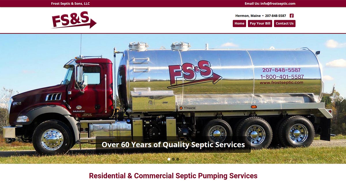 Keywords: Frost Septic & Sons, Maine Septic Services, Septic Tank Cleaning, Septic System Inspections, Septage Removal, Waste Water Pumps, 24 Hour Emergency Service, Bangor, Levant, Carmel, Levant, Glenburn, Hermon, Holden, Hampden, Winterport, Newport, Dover-Foxcroft, Maine