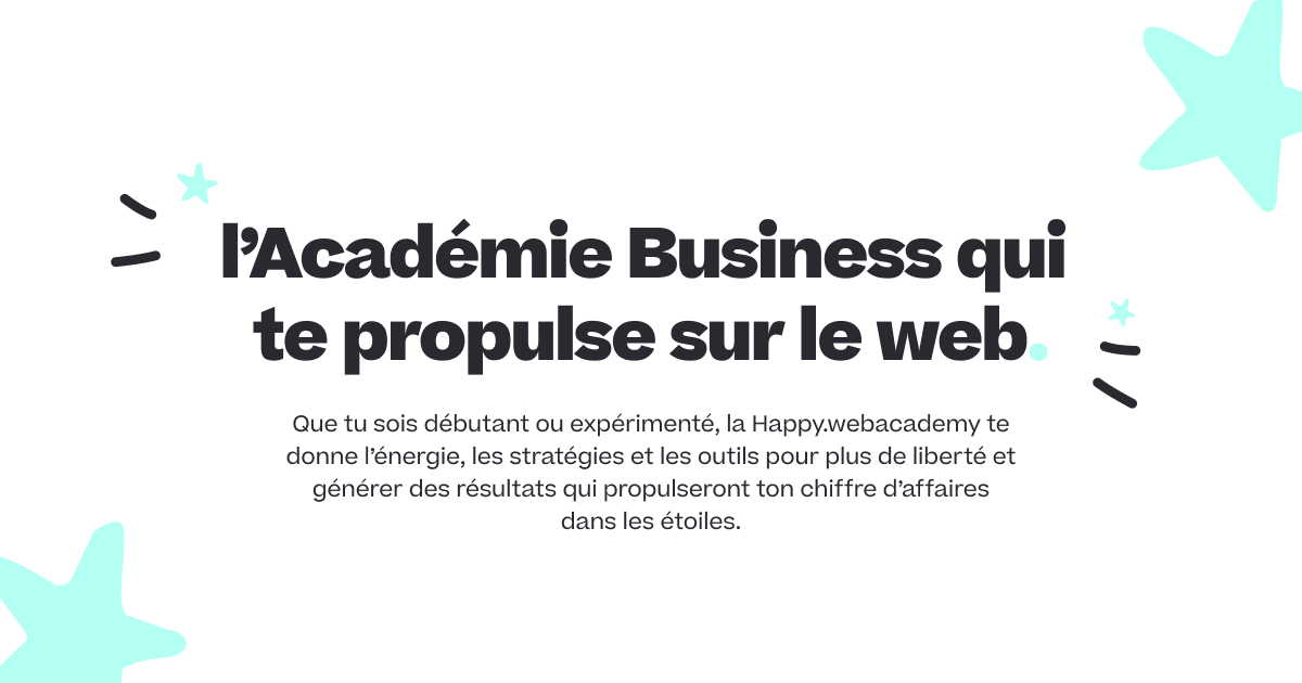 Que tu sois débutant ou expérimenté, la Happy.webacademy te donne l’énergie, les stratégies et les outils pour plus de liberté et générer des résultats qui propulseront dans les étoiles ton chiffre d’affaires.