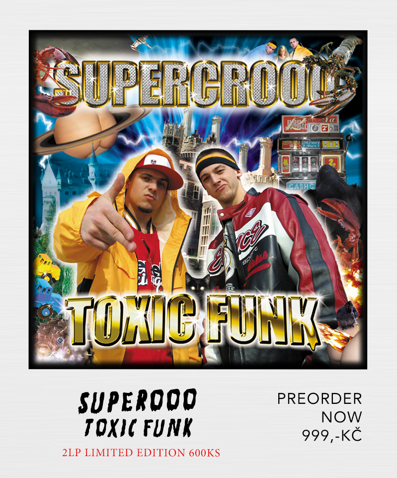 Supercrooo Toxic Funk vinyl 2LP, Hugo Toxxx 1000 CD, mikiny, trička s holubem, hypno merch, kulichy, beanie, hoodie, snapback, CD, LP, MC