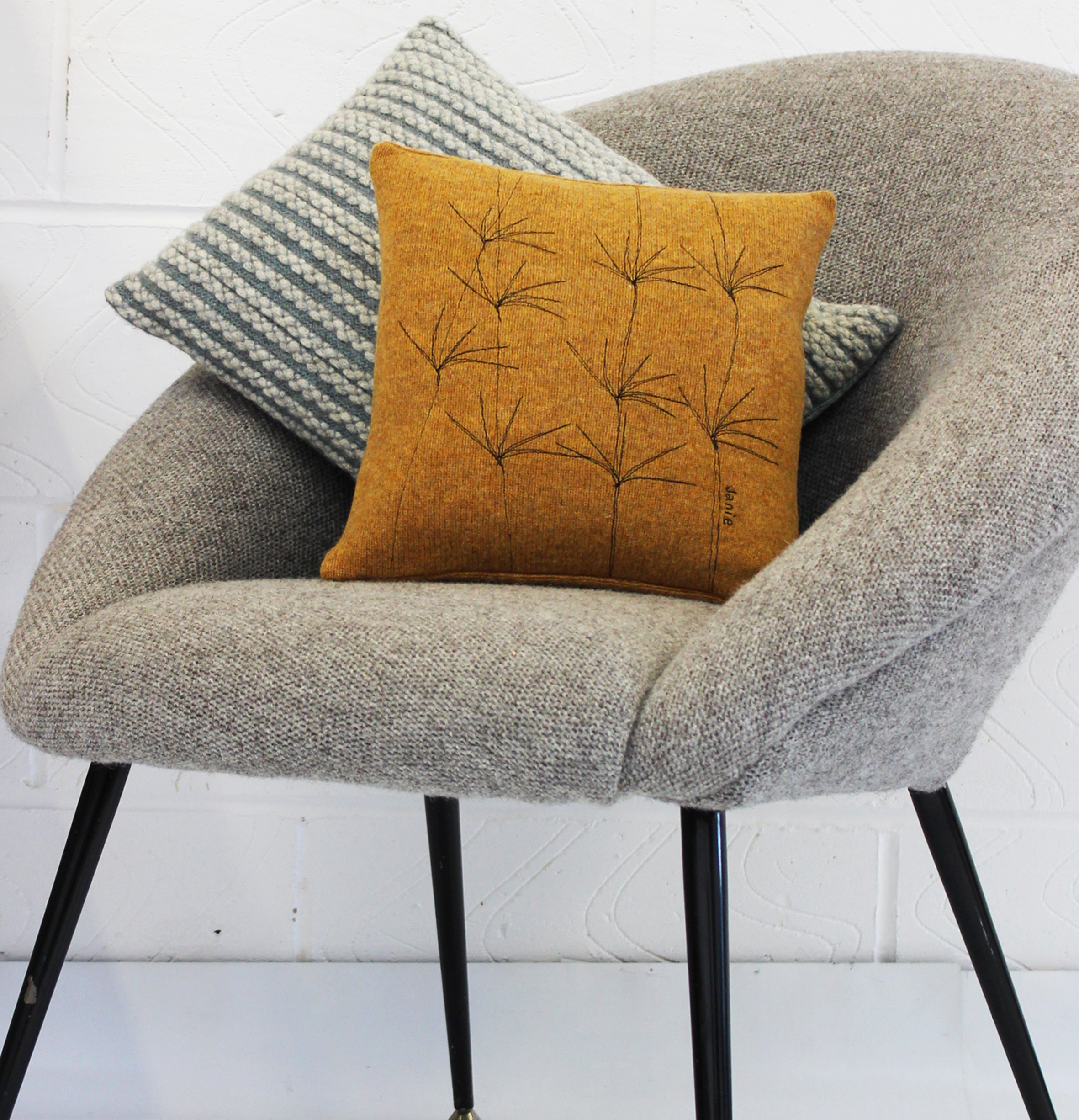 Keywords: Jane, Janie, Withers, Michael, Hanmer, Interior, Textiles, Fashion, Cushions, Woollen, Wool, Natural, Accessories, Contemporary, Bags, Hand-made, Purses, Knit