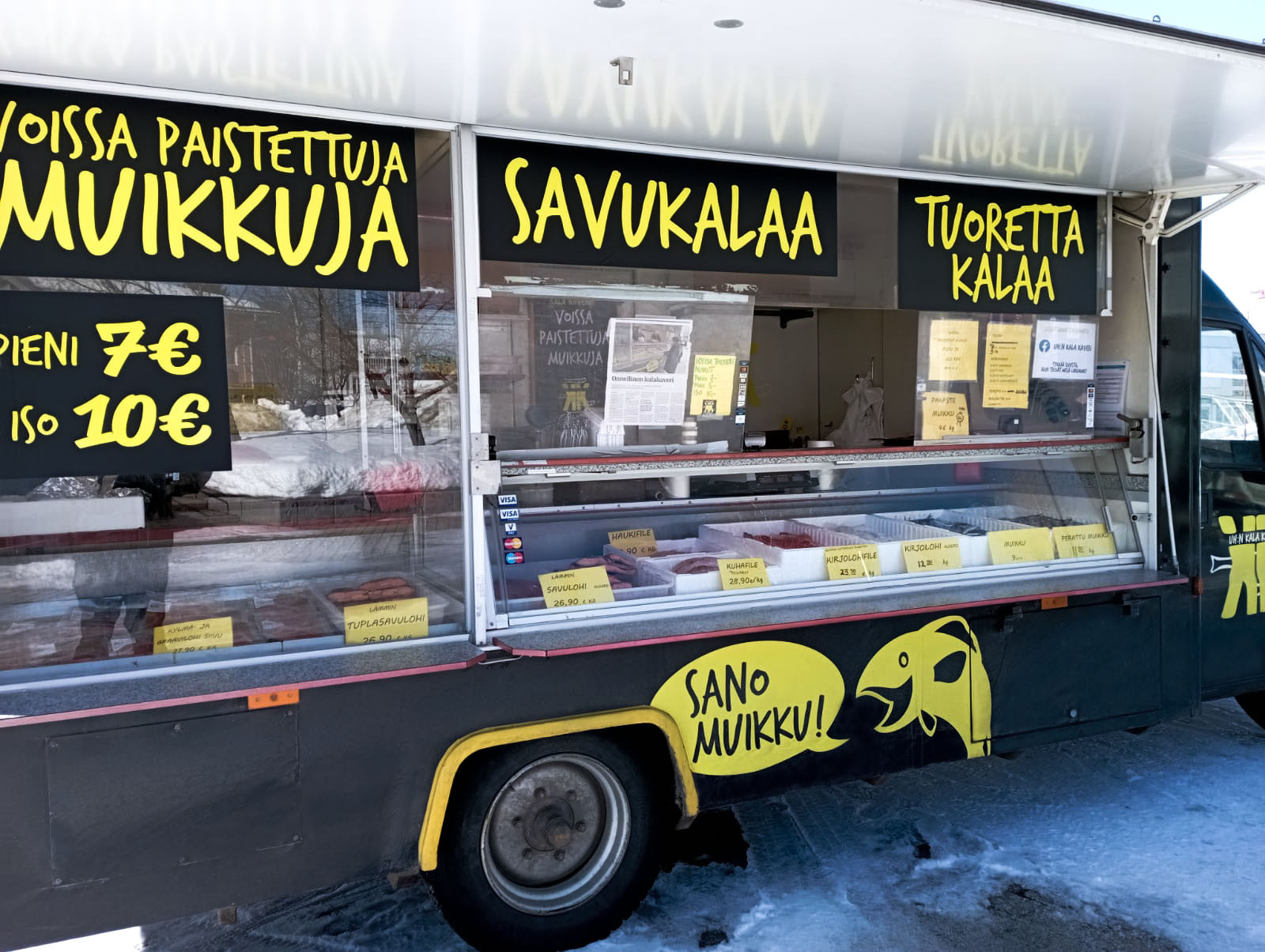 Kalaa pyörien päältä Pohjois-Karjalassa tuoreena, savustettuna ja paistettuna Uh:n Kala Kaverin kala-autosta. Katso ajo-aikataulu nettisivuiltamme!