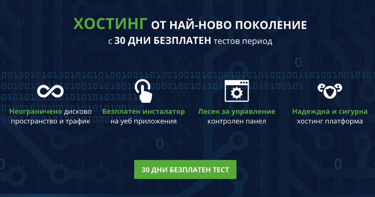 Keywords: хостинг, уеб хостинг, хост, бг хост, cloud услуги, cloud хостинг, хостинг услуги, уеб хостинг услуги, интернет услуги, хостинг компания, хостинг в българия, хостинг българия, домейни, регистрация на домейни, хостинг с безплатен тест, 30 дни безплатен тест