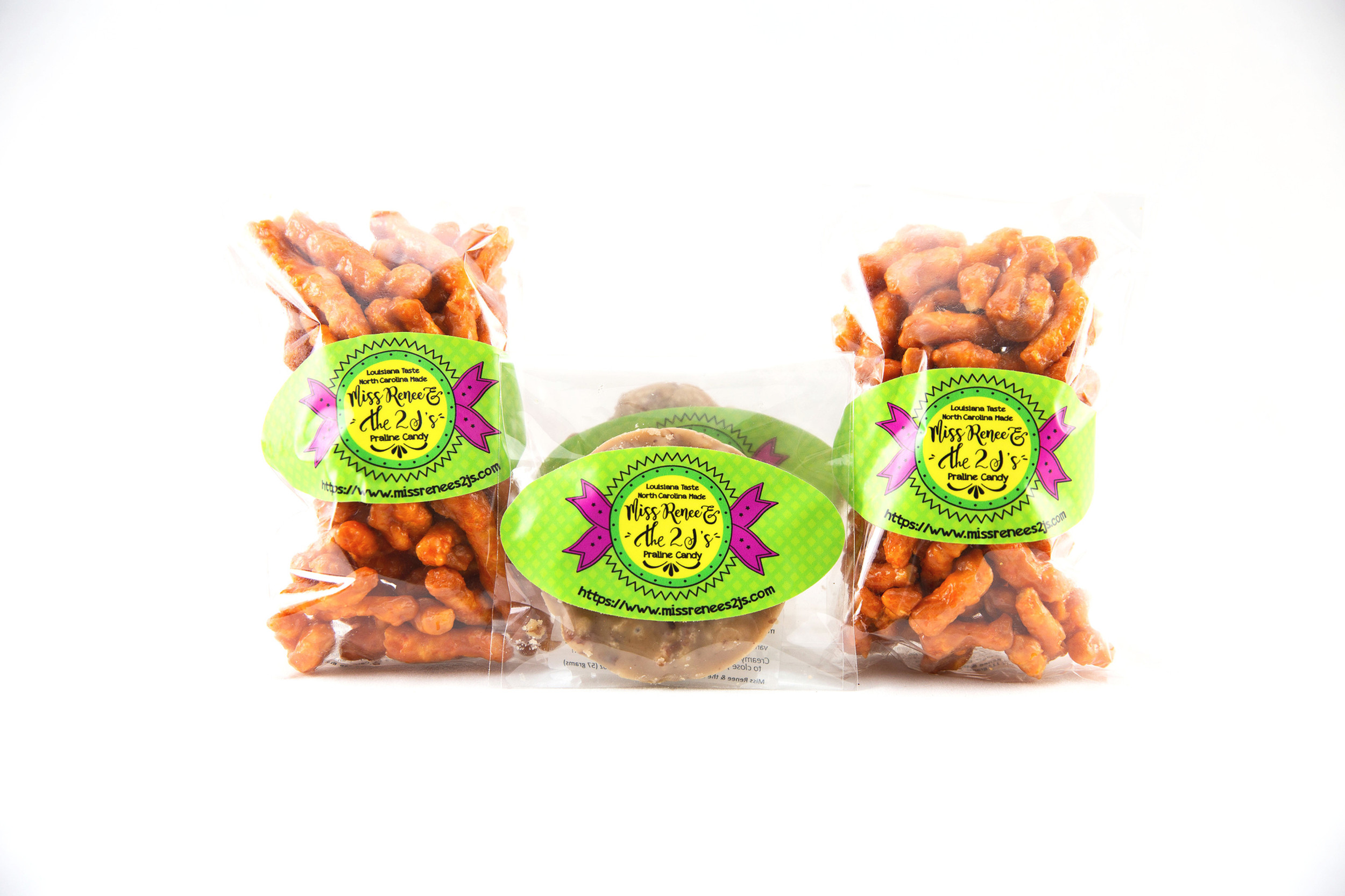 Ms.Renee & the 2 J's sells specialty treats such as Pralines(multiple flavors) and Caramel Crunch. Bringing Lousiana flavors to North Carolina local stores and shipping them across the country.