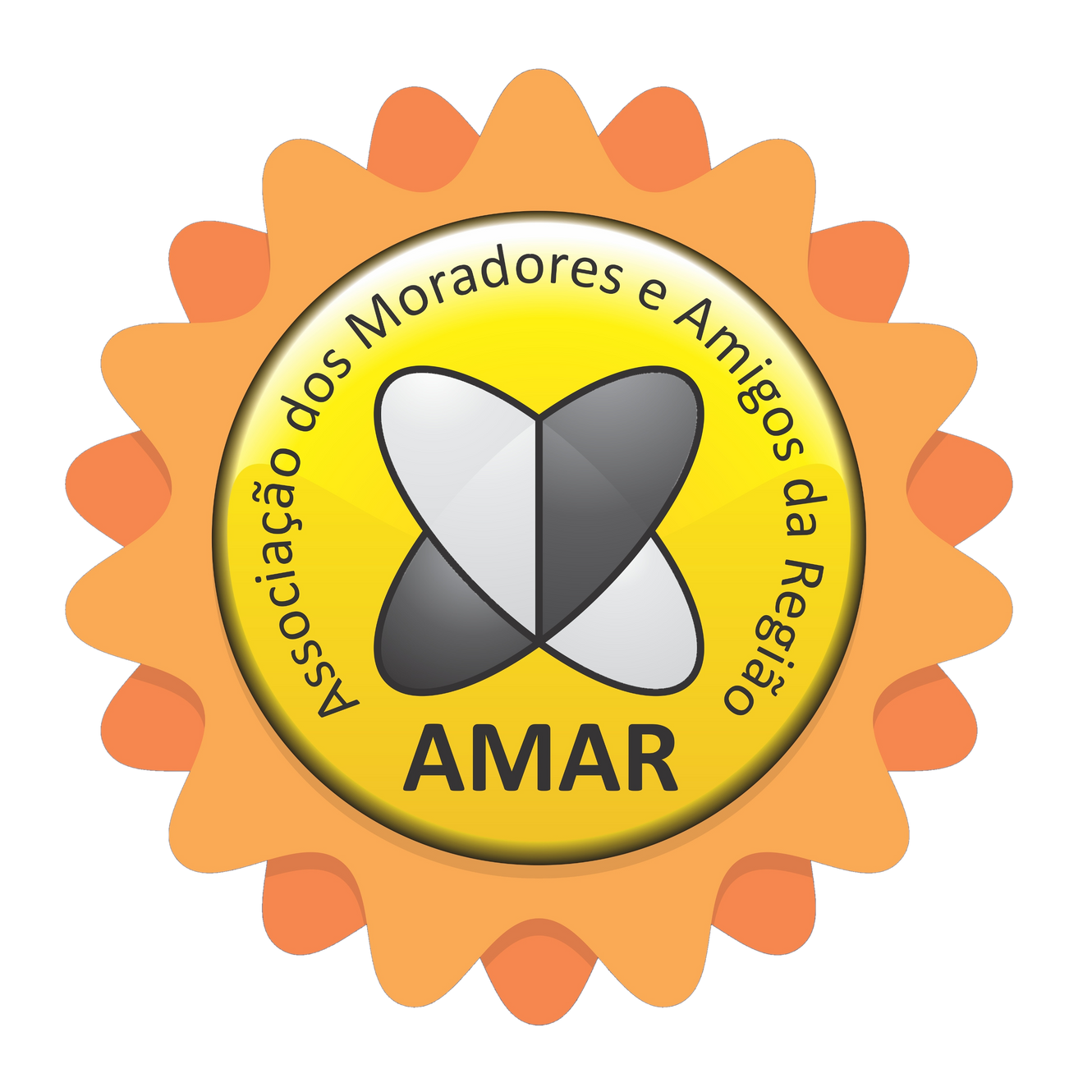 Página de boas-vindas. Fachada da nova sede em colagem com flores de artesanato. Bordados da AMAR.