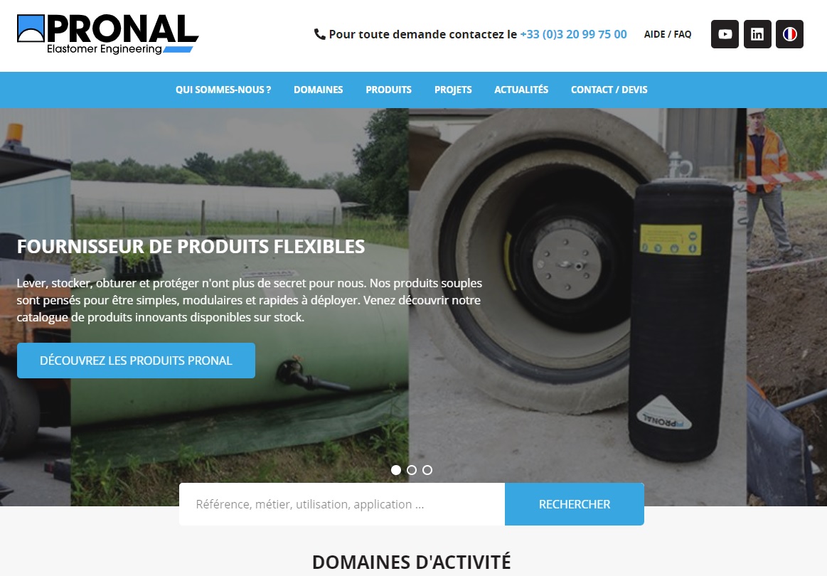 Pronal fabrique et commercialise des produits tels que des citernes souples, obturateurs gonflables, coussins de levage, vérins souples pneumatiques,...