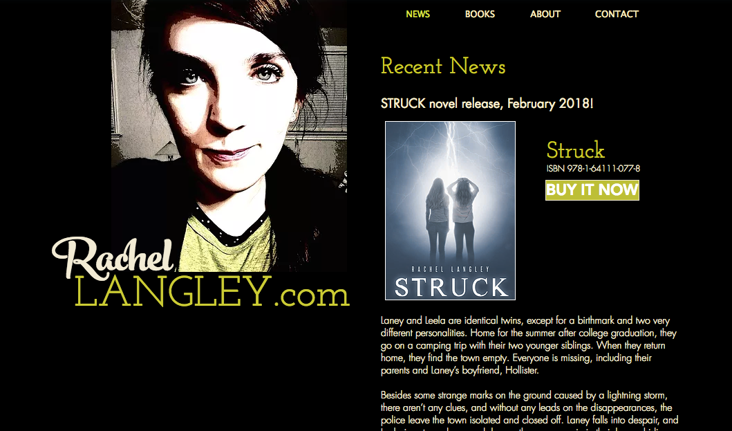 New author Rachel Langley debuts her first young adult sci-fi novel Struck. Visit RachelLangley.com to buy the book, find out the latest news, learn about the author and contact her.