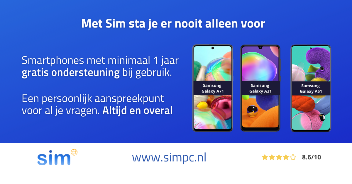 Met Sim sta je er nooit alleen voor. Computers, smartphones en tablets met minimaal 1 jaar gratis ondersteuning bij gebruik. Omdat digitaal en online voor ons altijd mensenwerk blijft, bieden wij persoonlijke en praktische hulp bij het dagelijks gebruik van onze apparaten.