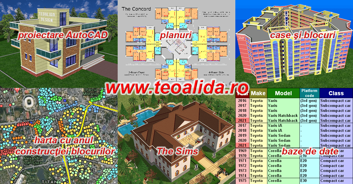 Harta cu anul construcţiei blocurilor, planuri apartamente, baze de date, populaţia oraşelor şi judeţelor, şi alte lucrări originale realizate de mine