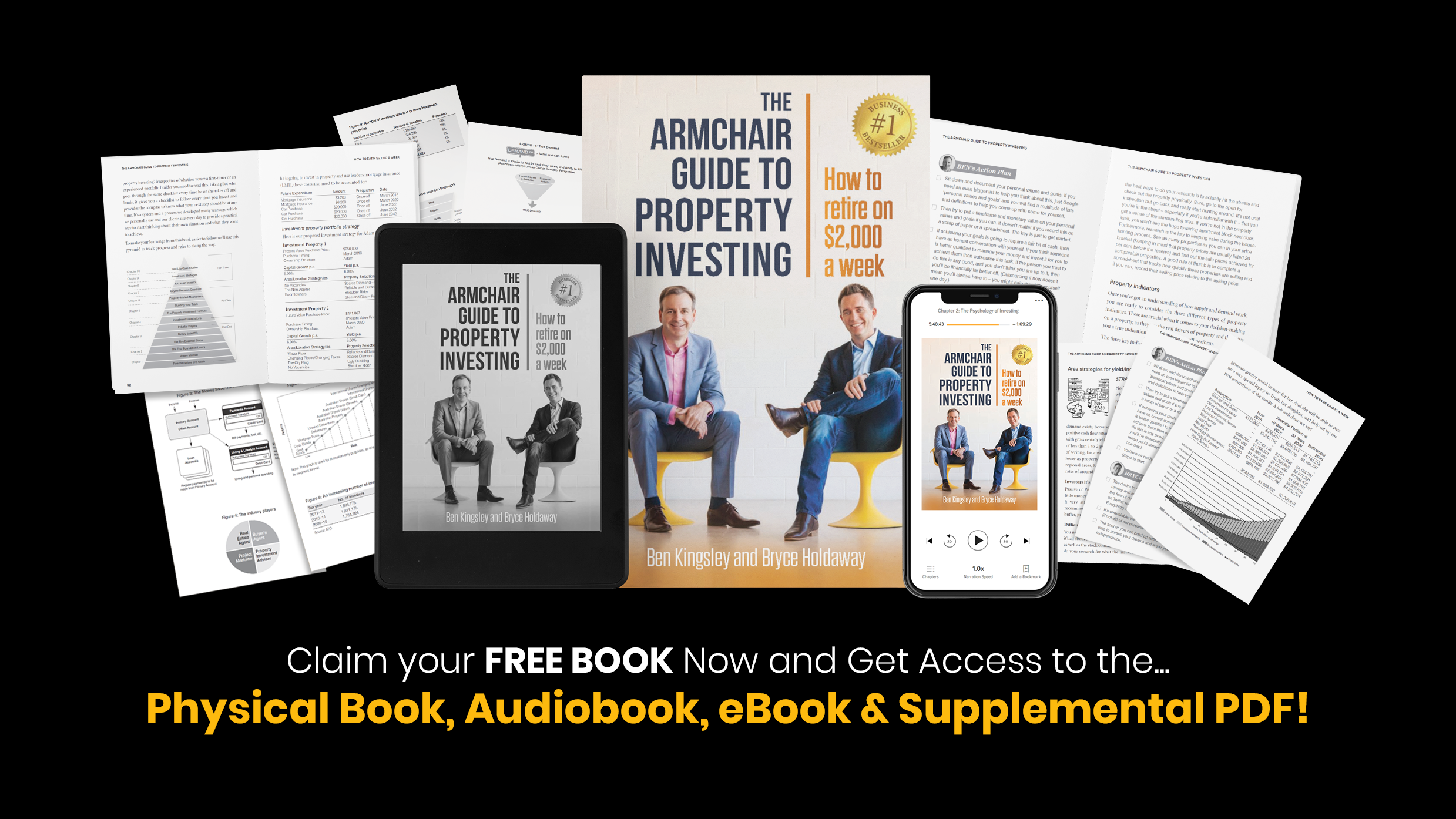 So... how do you build a property portfolio without having to renovate, redevelop or sacrifice your weekends? We'll tell you all about it in our #1 Best-Seller book, The Armchair Guide to Property Investing! And the best part is? We're giving out this book for free! Along with some additional bonuses that you will not find any other places too!