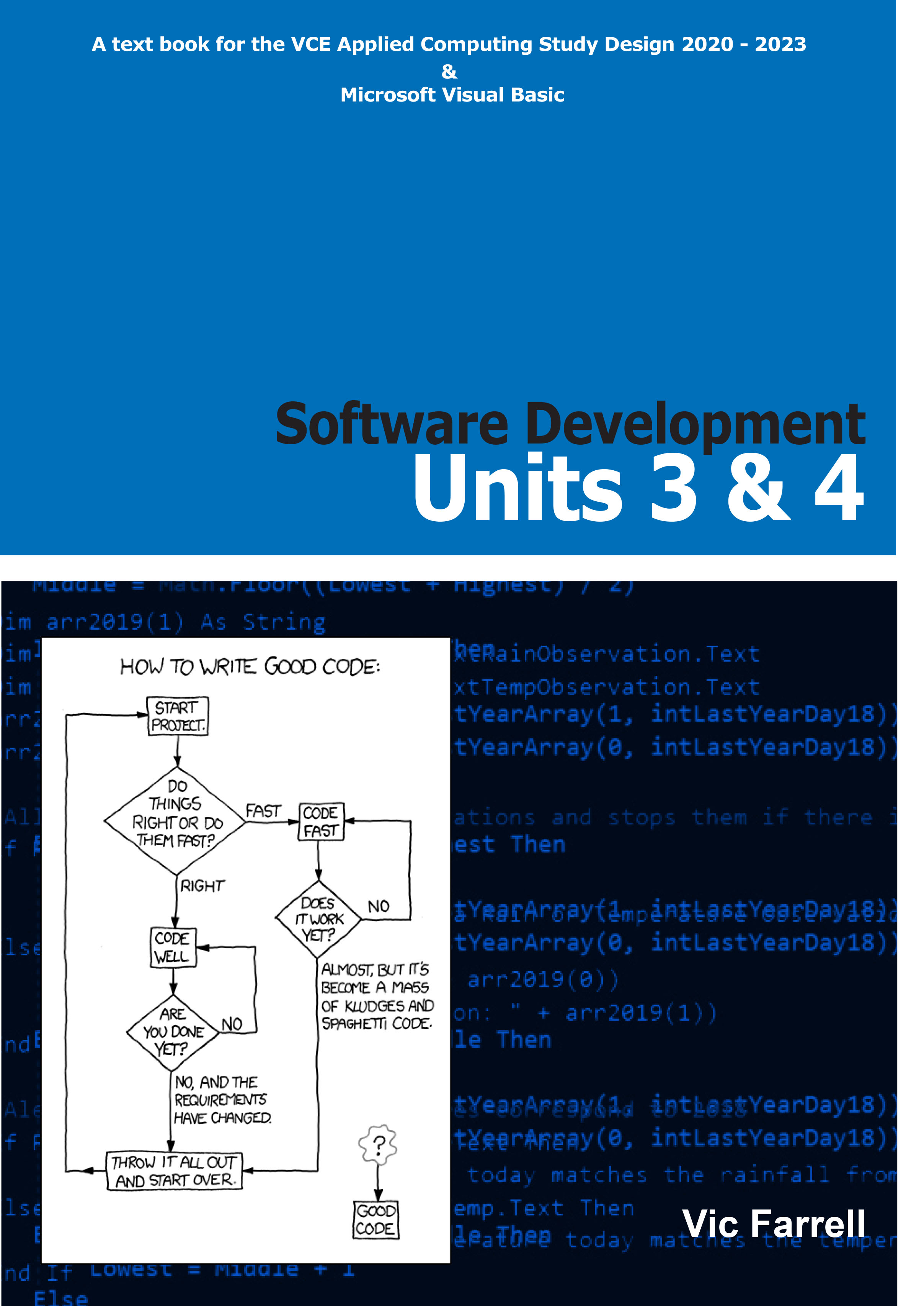 VCE Software Development 2020 Text Book designed to support novice programmers. Teaches students Visual Basic code and provides model assessment tasks.