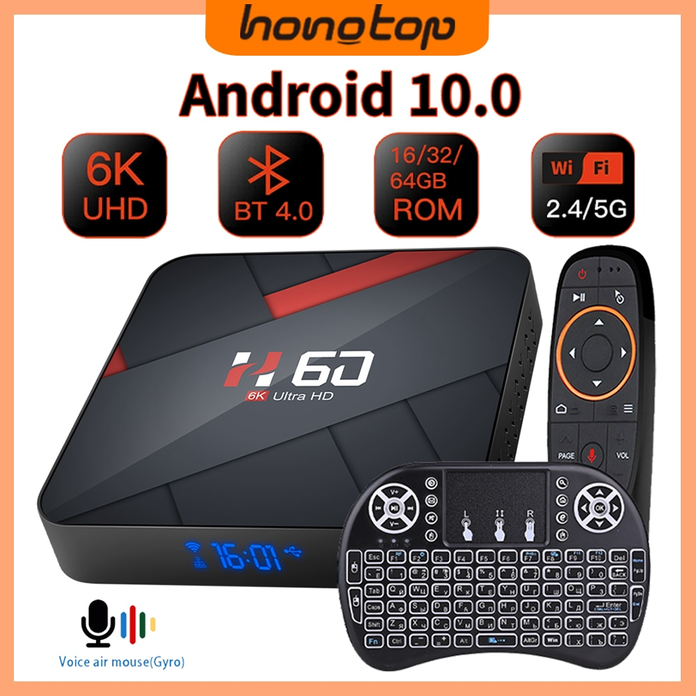 HONGTOP H60 Android 10.0 TV BOX 4GB 64GB 6K Voice Assistant 1080P Video TV receiver Wifi 2.4G&5G Bluetooth Smart TV Box Set top Box- CPU:Allwinner H616 64bits Quad-Core
