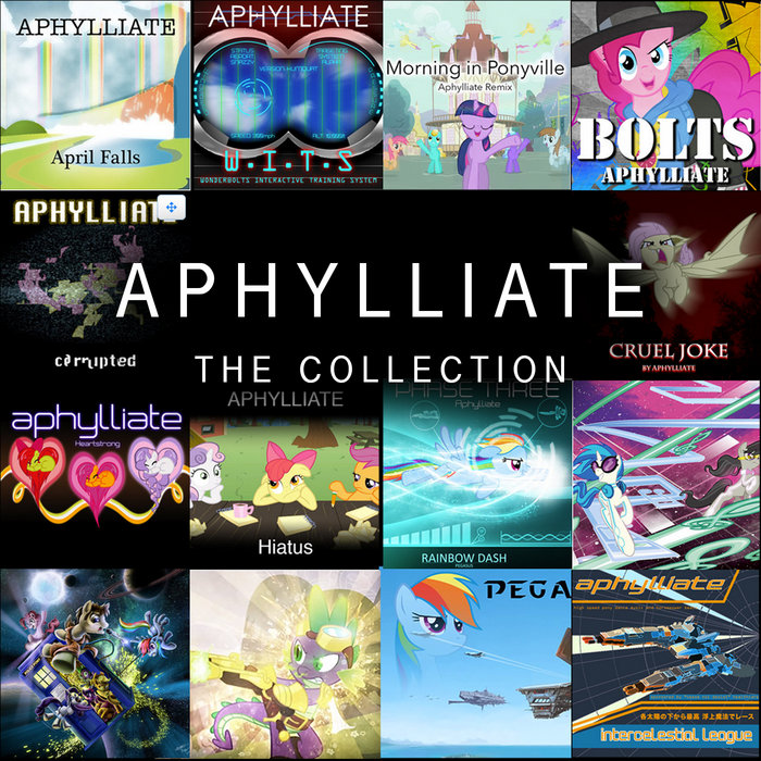 AphylliateThe Collection, released 28 January 20171. The Finest Creatures Ever2. Pegasus Arcane feat. Skelterwise3. Doctor Whooves4. Ride the Waveform5. Heartstrong6. Cruel Joke7. Phase Three8. Injustrial - The Devil in Me (Aphylliate Remix)9. Iron10. Find11. Hiatus12. Bolts13. Corrupted14. Morning in Ponyville (Aphylliate Remix)15. Speed16. Power17. Agility18. Marathon19. April Falls20. Welcome to the Drome21. Frozen Pipes22. Chicane23. Rainbow's EndDragons! Space! Lasers! Adventures! And most importantly...ponies.These are the tales of Aphylliate. And, as his story ends, he leaves you with one last gift, a collection of all his works, from 2013 to 2016. At the very end of this collection are a few secret stories that were never finished, and are written in a special ink, that which will only appear to the most loyal of ponies.A footnote at the end of the book reads:"Farewell, friends. It's been fun. Thankyou. Thankyou one and all."**********************************************************************************This bundle contains 23 original tracks (21 bandcamp releases + 2 previous tracks by Aphylliate: The Finest Creatures Ever and Pegasus Arcane, never before seen on Bandcamp!!) For fans who purchase the album they will receive FIVE bonus unreleased tracks. These tracks were never released due to moving projects and are a love letter to fans!! Altogether that's 28 tracks for £3.50! ($4.39)Save 0.50 by buying this album as an alternative to downloading each individual release.If you wish to know what Aphylliate is up to know, check this website!! https://michaelclarkmusic.wordpress.com/