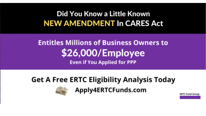 Take advantage of the CARES Act ERTC. Business owners rewarded for keeping employees during the pandemic, up to $26K per W-2 employee. Fast Painless Process.