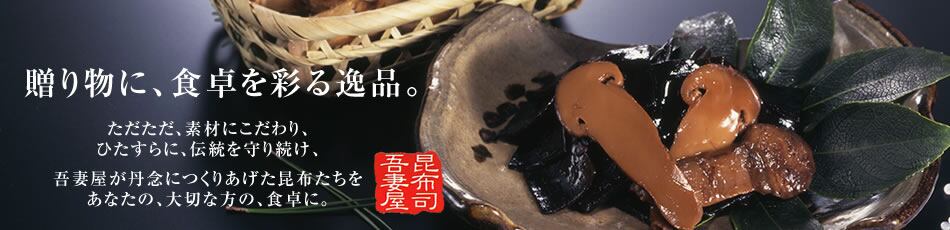だし昆布や佃煮など昆布を幅広く取り熱い。贈り物にもぴったりの最高級の羅臼昆布を吾妻屋がお届けいたします。伝統的な製法による大阪浪花の昆布の味をお楽しみください。
