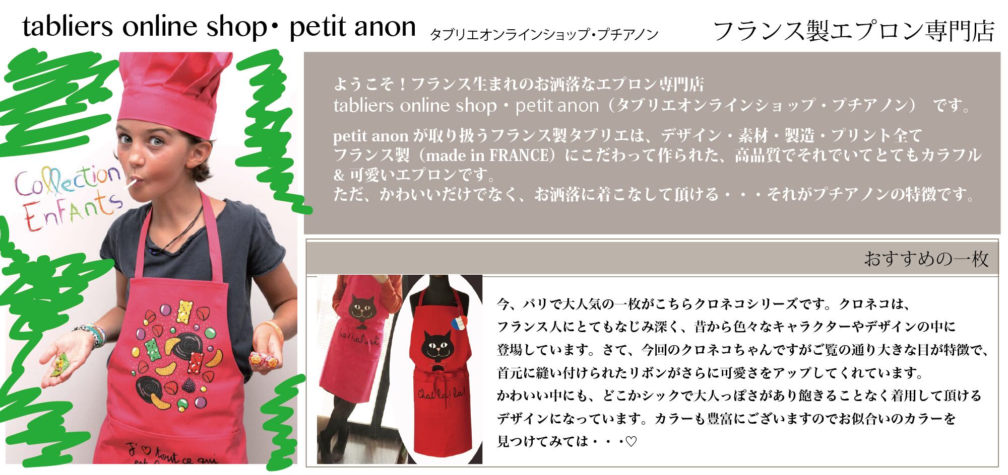 おしゃれでキュートなフランス製タブリエのオンラインショップ