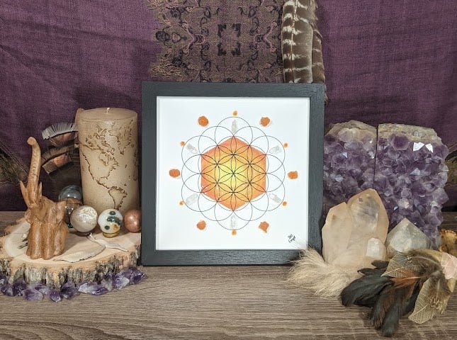 Hand painted, spiritually inspired crystal grids.