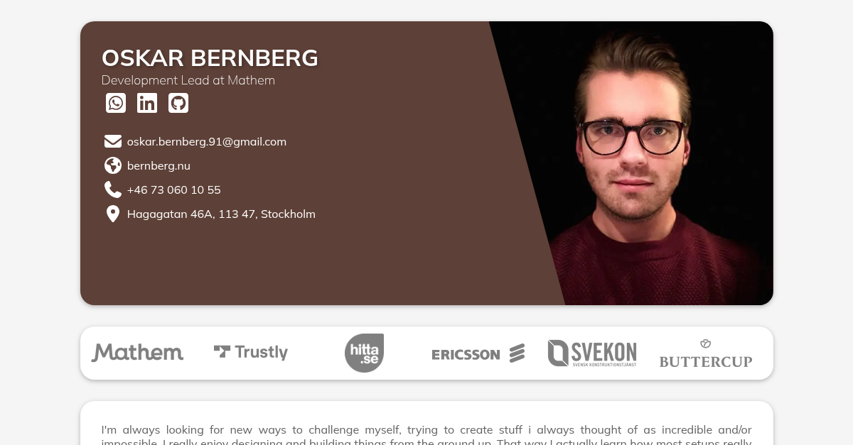 I'm always looking for new ways to challenge myself, trying to create stuff i always thought of as incredible and/or impossible. I really enjoy designing and building things from the ground up. That way I actually learn how most setups really work. Of course I continuously run into small hurdles along my way of achieving what I thought was impossible, but as always, spending some time on Google gives me the answers and leaves me with more experience. I'm a problem solver by heart and will always love taking on new challenges.