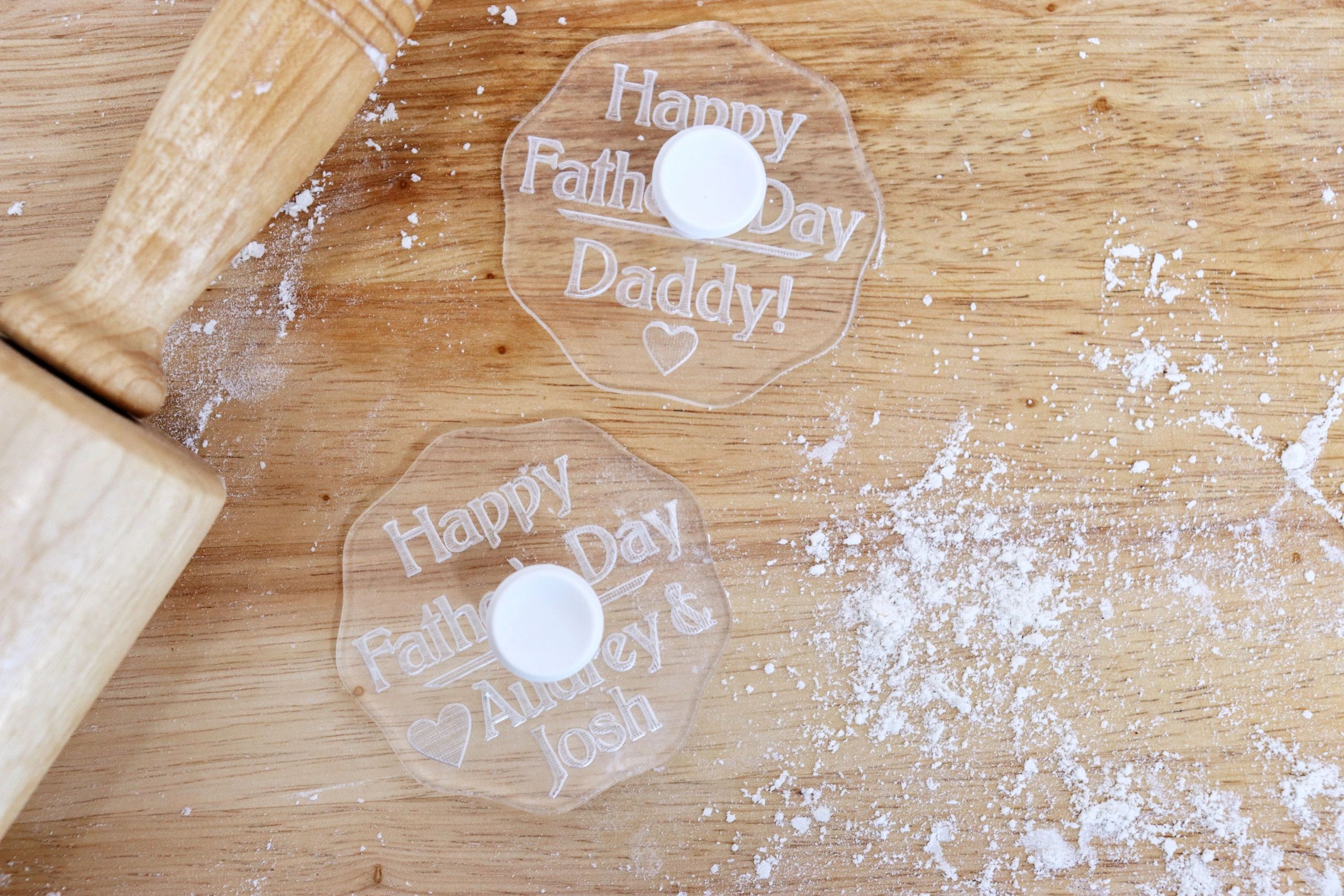 Bake your own personalized cookie stamps at home. Made of solid acrylic and custom engraved with your text. $23.50