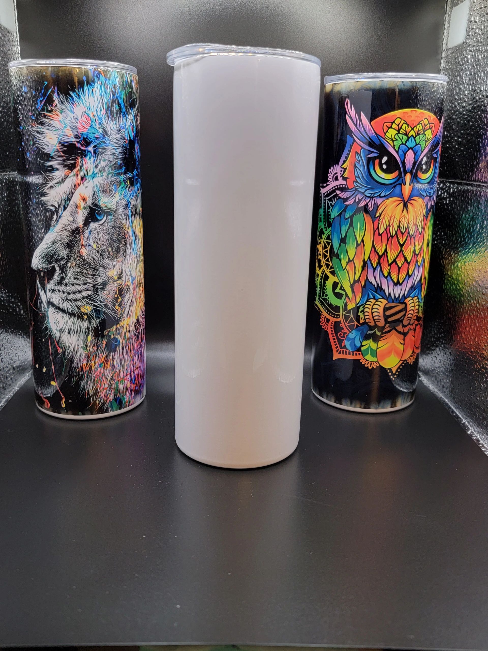 Handmade crafts including self-defense key chains, glitter and sublimation tumblers, and crafting supplies.