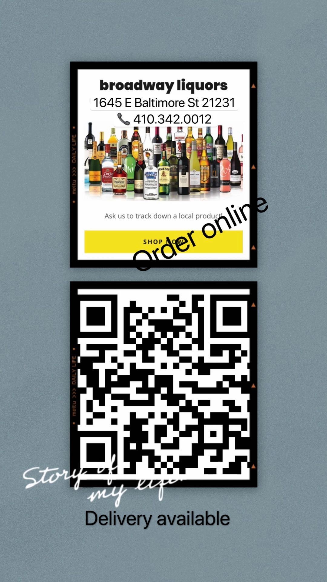 liquor store: Tequila . Red wine . cold white wine. Rum .Whisky. Beer . Champagne. open from Monday to Saturdaystore phone # 410 342 0012