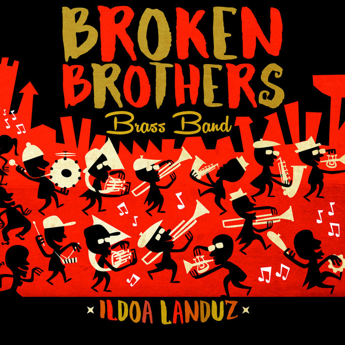 Broken Brothers Brass Bandildoa landuz by BROKEN BROTHERS BRASS BAND, released 03 March 20161. Azken kantua balitz2. Fuera de la pecera3. Freedom jazz dance4. Cabeza Fuego´s Second Line5. Dantza zure botilarekin6. Broken Salad7. Gumbo Ibaiertzean8. (Joan aurretik) Edan pozoi hauION CELESTINO: TRUMPETMARIO DIAZ DE RADA: TRUMPETALBERTO ARTETA: TENOR SAXIÑAKI RODRIGUEZ: BARITONE SAXMIGUEL MOISÉS: TROMBONEADRIÁN MARTINEZ: TROMBONEENEKO URRESTARAZU: TROMBONEALFONSO ARETA: SOUSAPHONEJUANPE MEDRANO: SOUSAPHONEDANI “MONSTRUITO” LIZARRAGA: TAMBOURINEGORKA GAZTANBIDE: SNARE DRUMJON URIBEETXEBERRIA: BASS DRUMalso featuring:NEREA ERBITI: vocals on “AZKEN KANTUA BALITZ”MOISÉS NO DUERME: rap on “FUERA DE LA PECERA”CABEZAFUEGO: VOCALS ON “CF 2ND LINE”NKO EKO& OMZO MF: rap on “BROKEN SALAD”JUANGA LAKUNTZA: trombone solo on “GUMBO IBAIERTZEAN”ITSUA: beat making, record playing, finger poppingVOCAL ASSAULT FORCE:OROEL OTAL – LUIS SOLDEVILA – ADELA R. DE COS – XABI MAEZTUNEREA ERBITI – JOSU IHABAR – JOSU MARTINEZ – ANA POLA