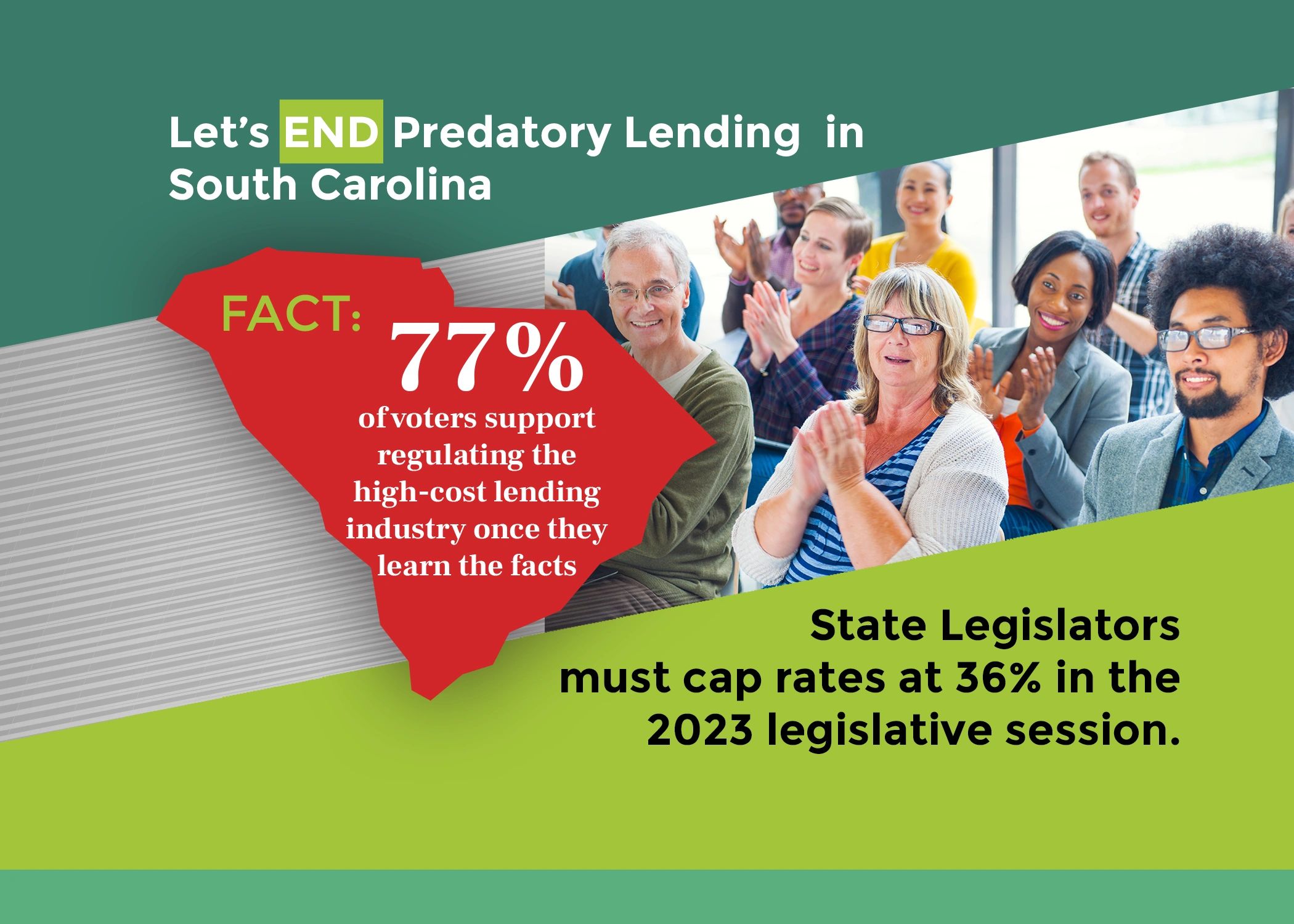 About the South Carolina Fair Lending Alliance (SCFLA):Our Alliance is comprised of various faith communities, non-profits, community development organizations and individuals that support a rate cap of 36% inclusive of all fees. Collectively, this Alliance represents neighbors all across the state.