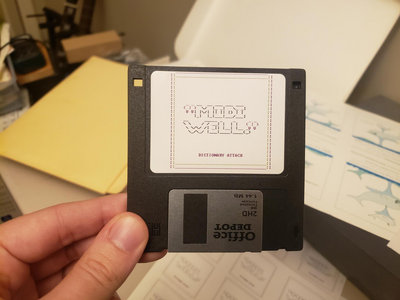 MIDI WELL 3½ "Floppy" diskette from Dictionary Attack, $10.00 USD.NOTE TO NON-US PEOPLE: shipping is so expensive that it is basically not worth it. if you want a floppy and possibly also want to buy future things i make, send me an email and let's figure out a way to not pay $16 per package / I have long had intentions of selling Floppy disks containing MIDI WELL, the 2012 album "VERY WELL" but recreated in awful MIDI files. I lost momentum somewhere in the manufacturing phase, probably because something more interesting or catastrophic came along, but they are basically all ready to be built. If you have a very old computer, I am happy to format them accordingly. I have decided this will be an edition of 25. Honestly I don't remember getting this far into the process in like 2015 but I am now in a circumstance where I could use as much Income as I can get.If you are on this page, you probably like my music. Thank you. If you would like to pay for it (Dictionary Attack has always been free), I will mail you a piece of plastic as thanks. I probably have a few other pieces of promotional garbage that I can fish out and stick in a Media Mail envelope too, if you want, but nothing substantial enough to sell on its own. This is what I have to offer.