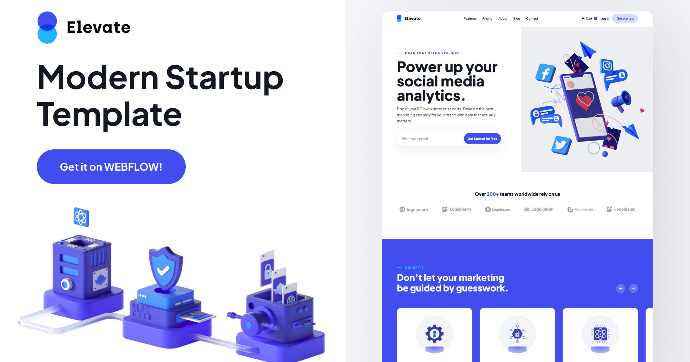 Boost your conversion rate with a stylish, modern website that uses 3D illustrations, smooth interactions and unique value-laden sections. Showcase the best features of your software, build trust and convince visitors with Elevate!